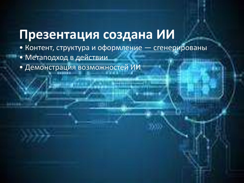 Презентация создана ИИ• Контент, структура и оформление — сгенерированы