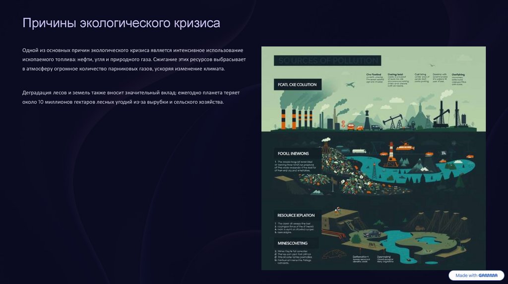 Причины экологического кризисаОдной из основных причин экологического кризиса является интенсивное использование
