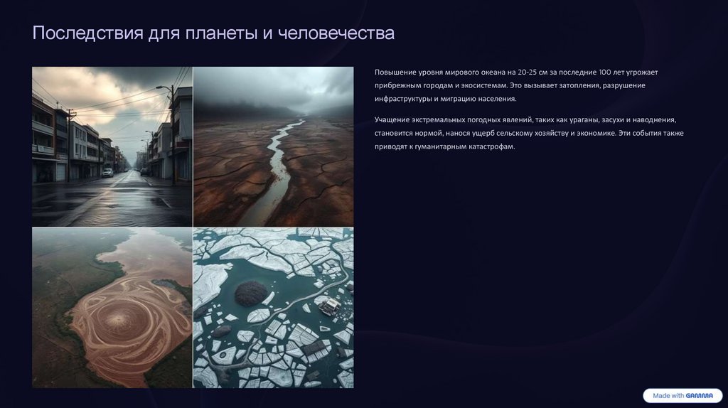 прибрежным городам и экосистемам. Это вызывает затопления, разрушение