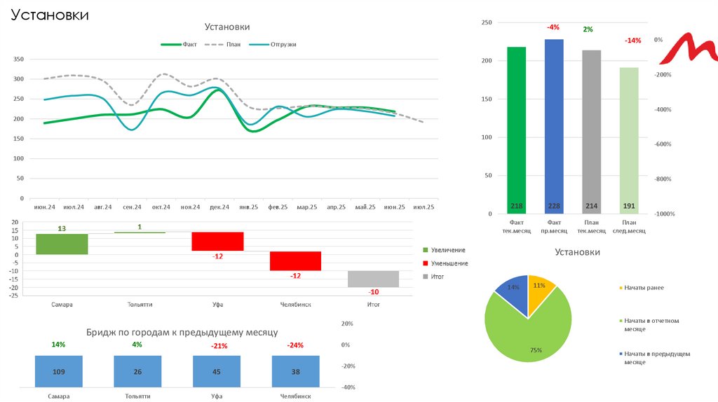 Бридж по городам к предыдущему месяцу