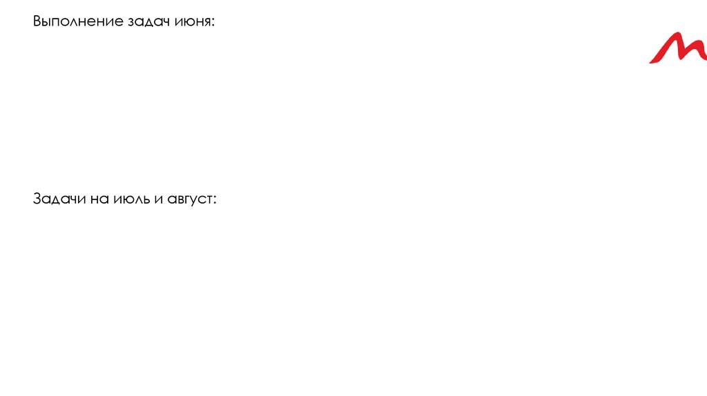 Выполнение задач июня:Задачи на июль и август: