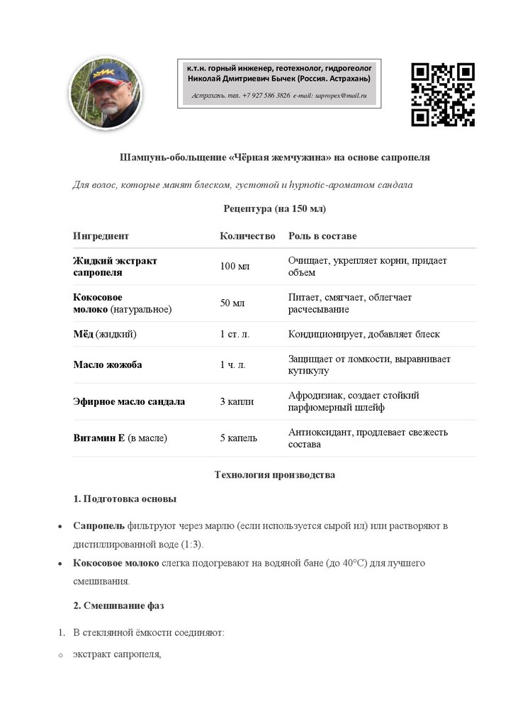Шампунь-обольщение «Чёрная жемчужина» на основе сапропеля