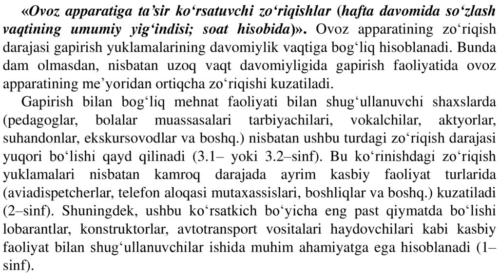 oshiriluvchi mehnat faoliyatida zo‘riqish darajasi nisbatan ortishi qayd qilinadi (2–