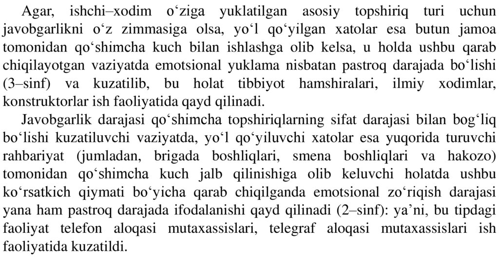 murakkablik darajasi yanada ortishi va o‘z navbatida, mehnatning zo‘riqtiruvchi