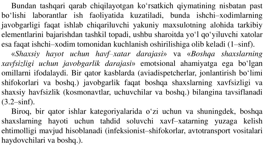 sinf) bilan bog‘liq bo‘lib, bu holat ishlab chiqarish korxonasining rahbariyati,
