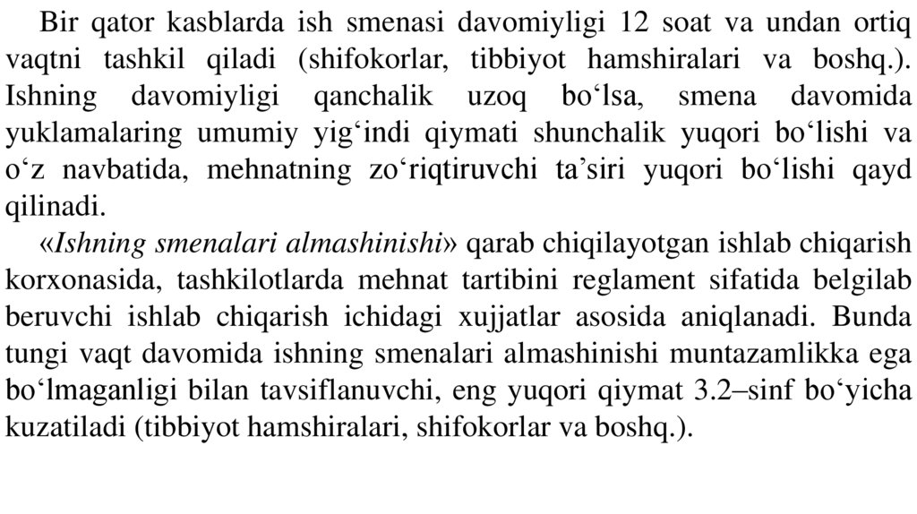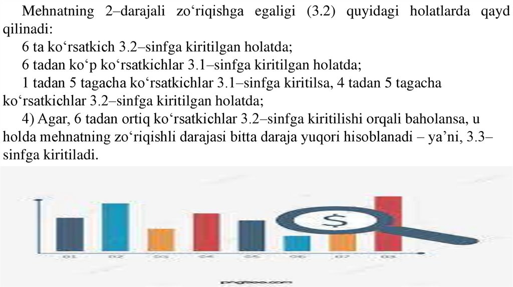 holda mehnatning zo‘riqishli darajasi bitta daraja yuqori hisoblanadi – ya’ni, 3.3–