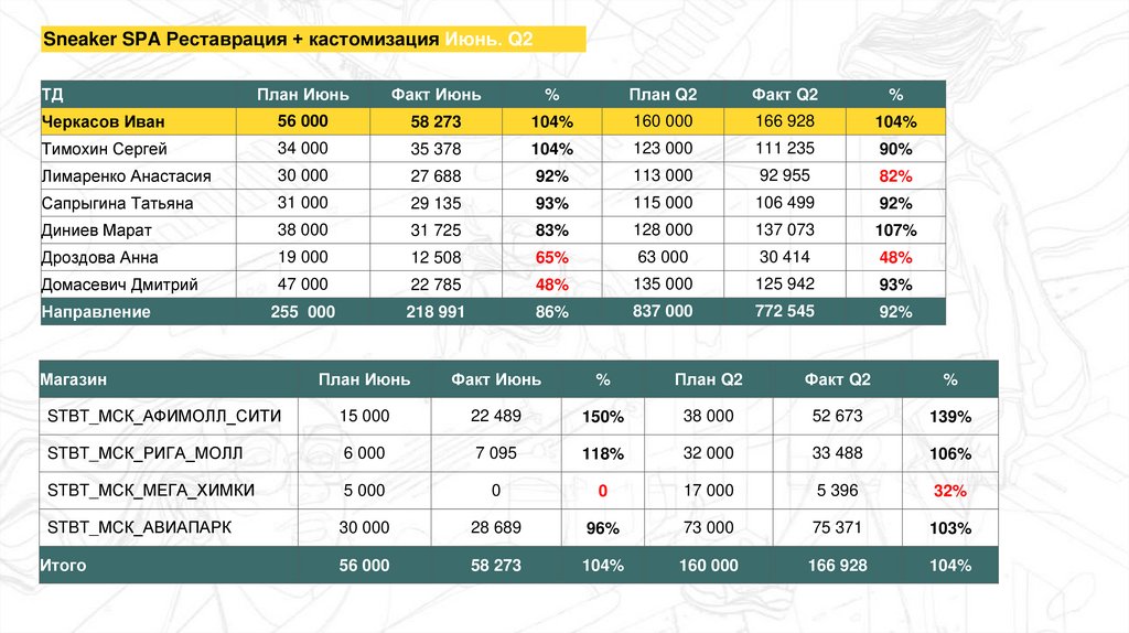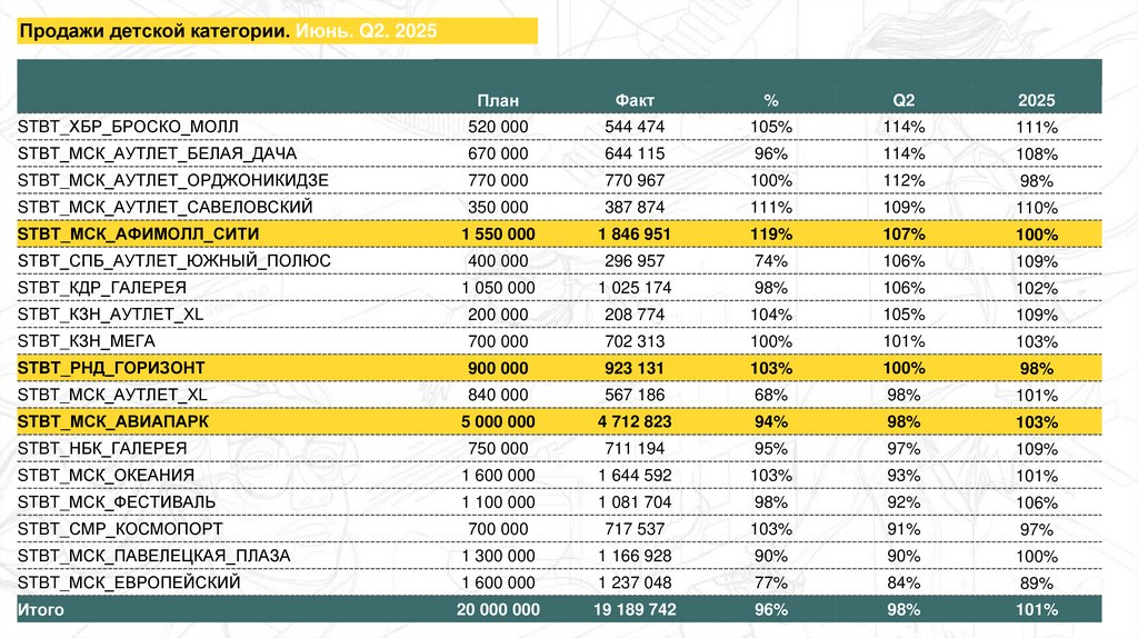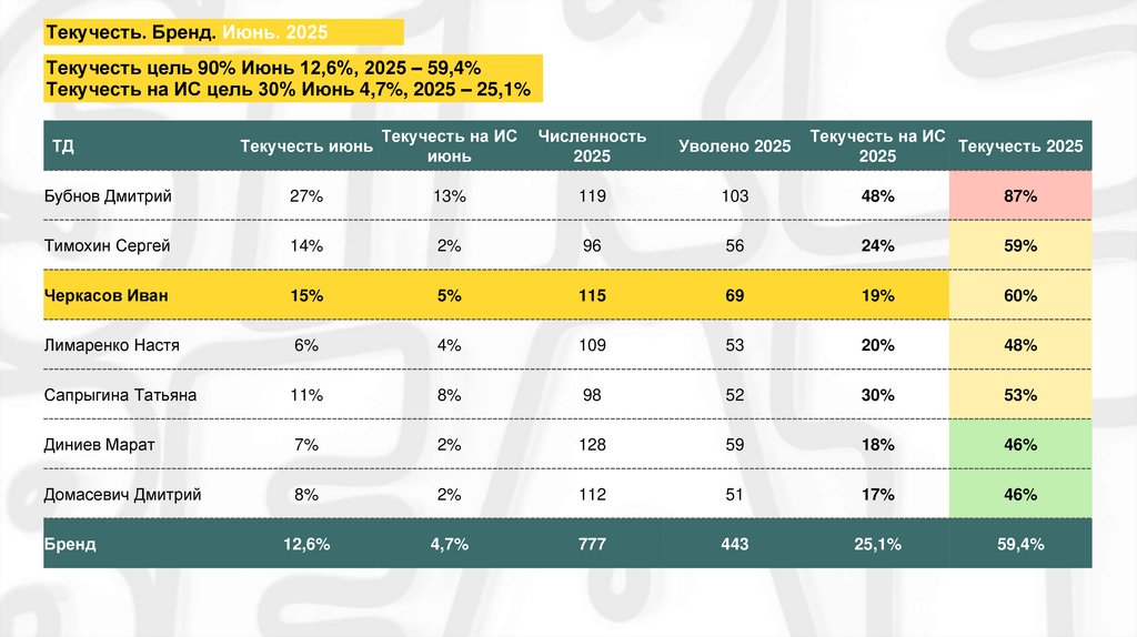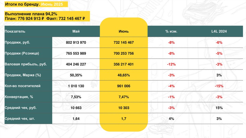 Итоги по бренду. Июнь 2025Выполнение плана 94,2%