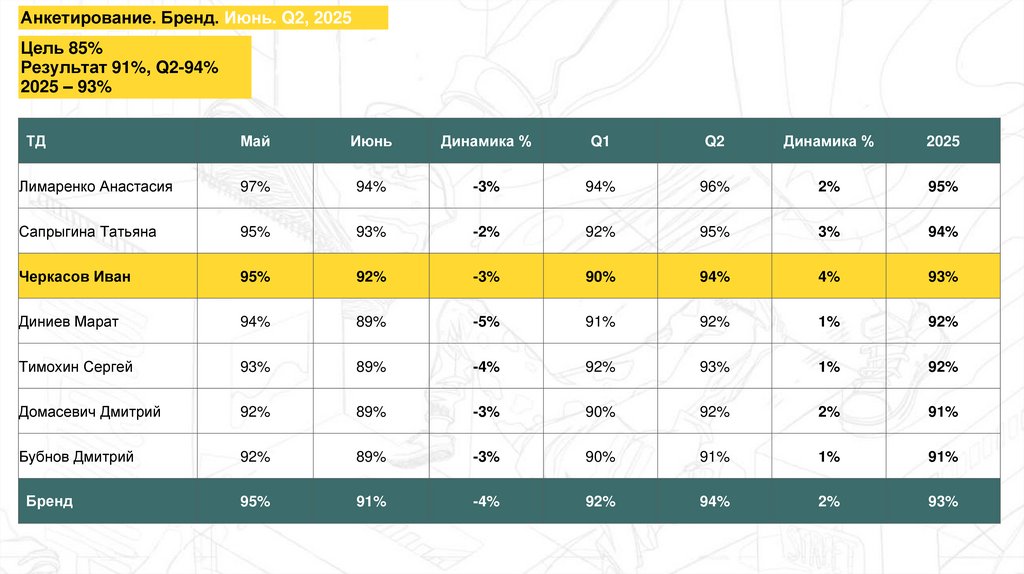 Итоги по бренду. Q2 2025Выполнение плана 90,7%