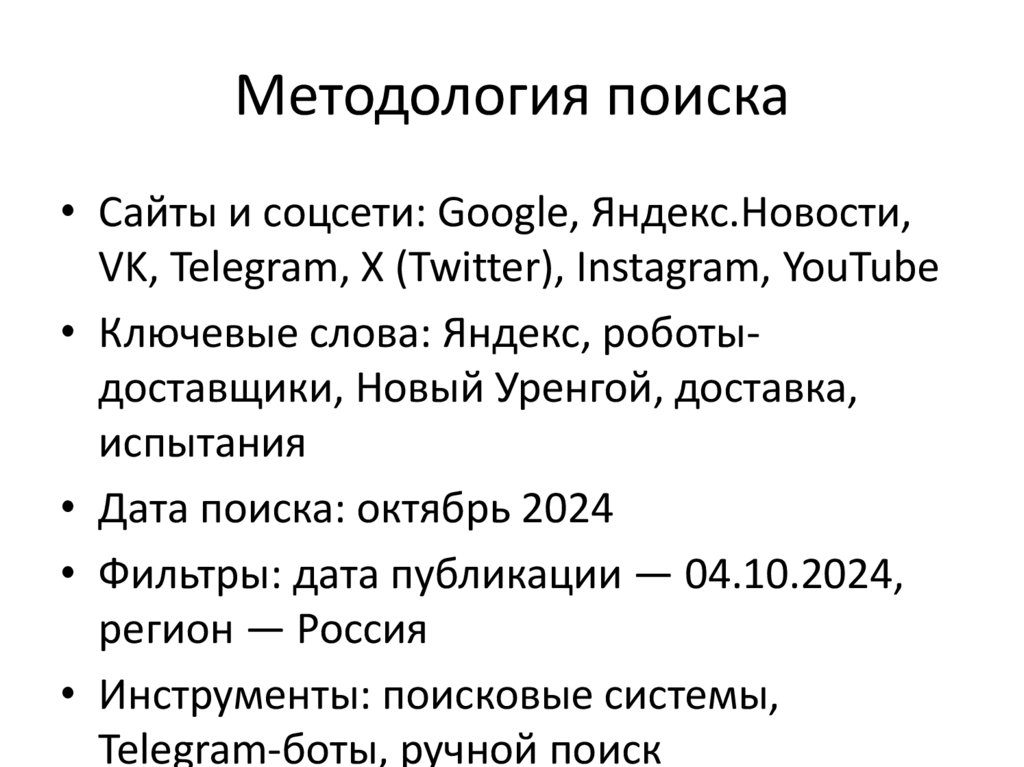 Методология поиска• Сайты и соцсети: Google, Яндекс.Новости,