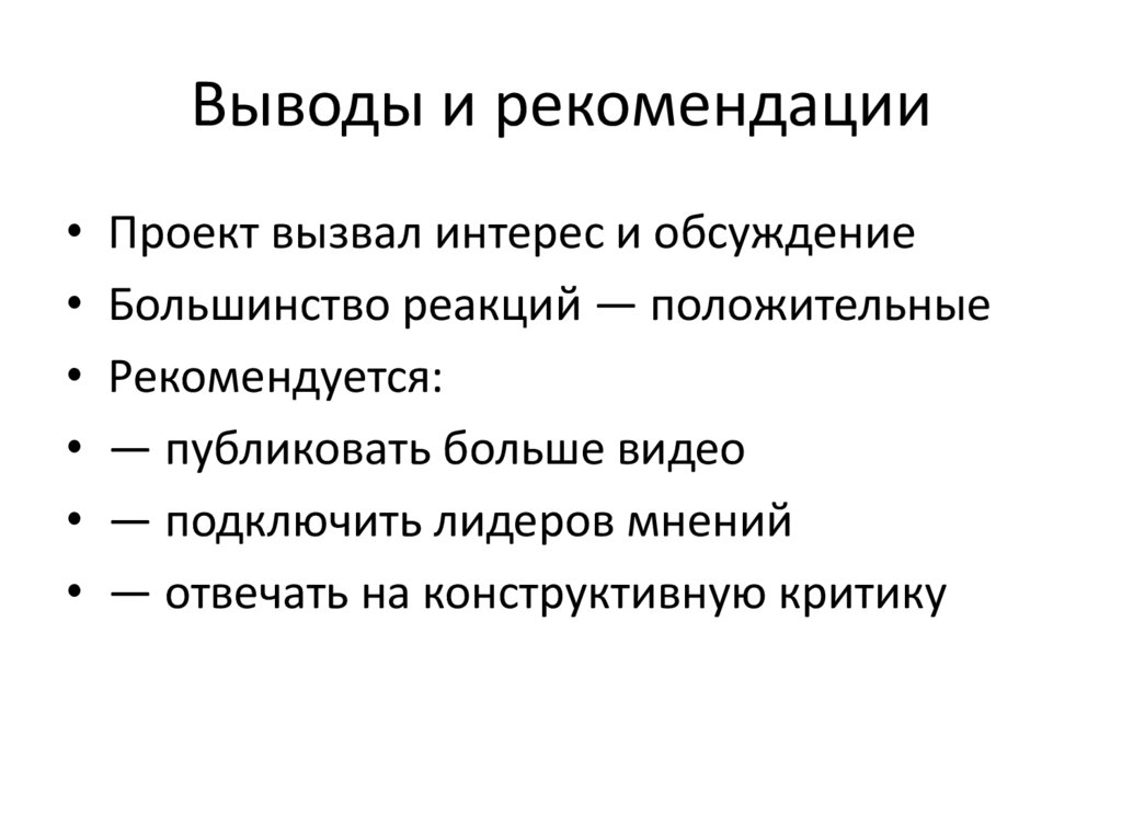 Выводы и рекомендации• Проект вызвал интерес и обсуждение