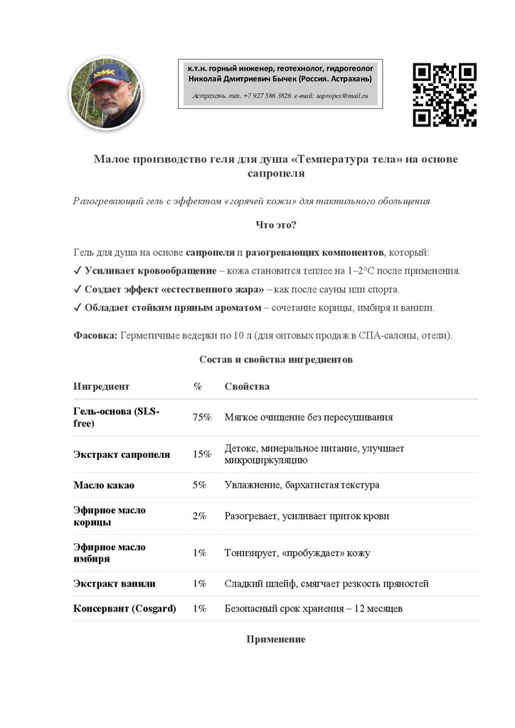 Гель для душа на основе сапропеля и разогревающих компонентов, который: