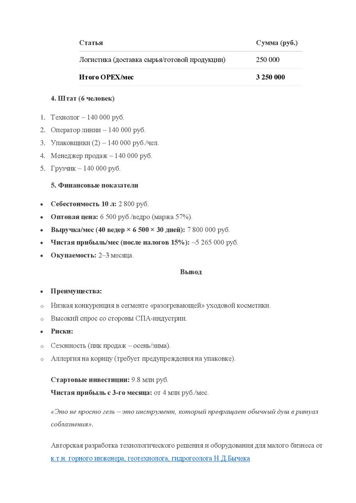 Выручка/мес (40 ведер × 6 500 × 30 дней): 7 800 000 руб.