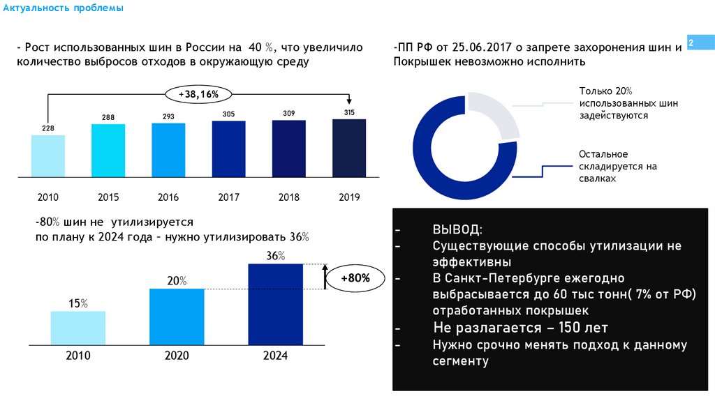 Актуальность проблемы- Рост использованных шин в России на 40 %, что увеличило