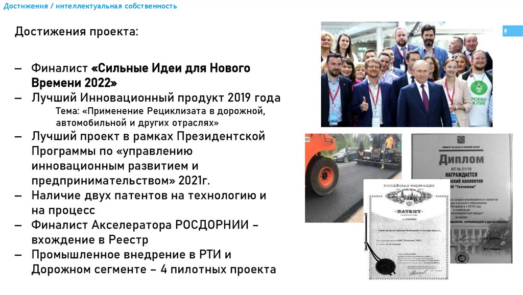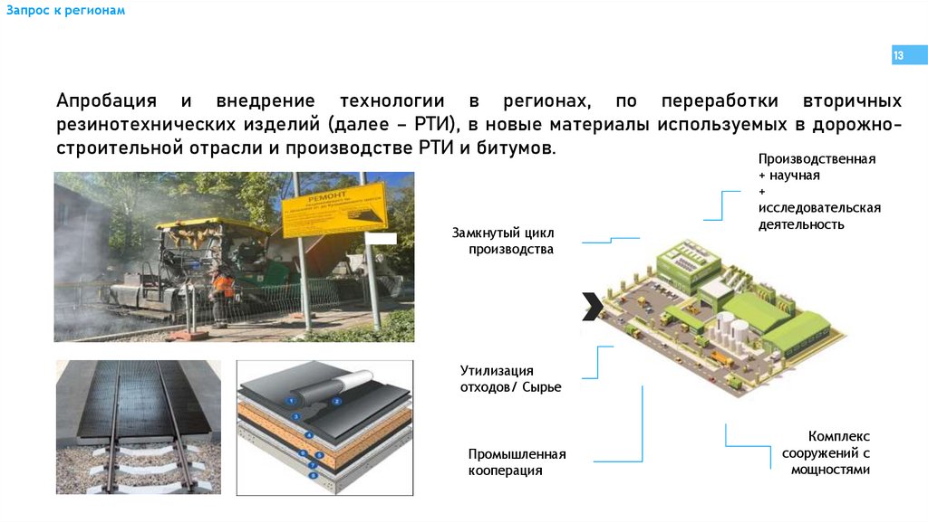 резинотехнических изделий (далее – РТИ), в новые материалы используемых в дорожностроительной отрасли и производстве РТИ и битумов.