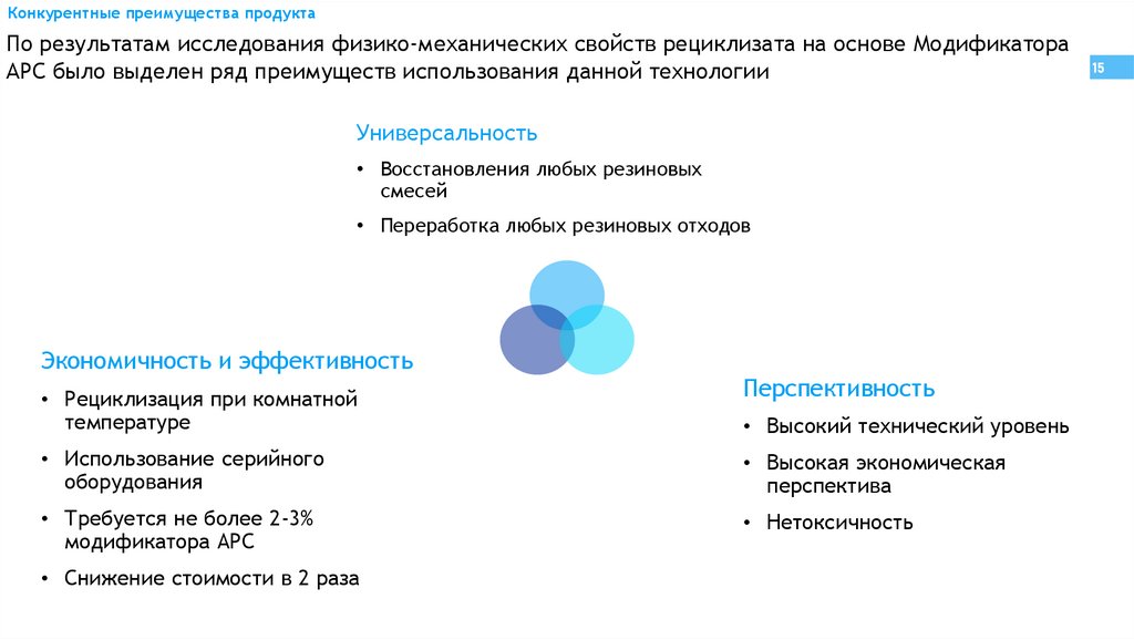 Конкурентные преимущества продуктаПо результатам исследования физико-механических свойств рециклизата на основе Модификатора