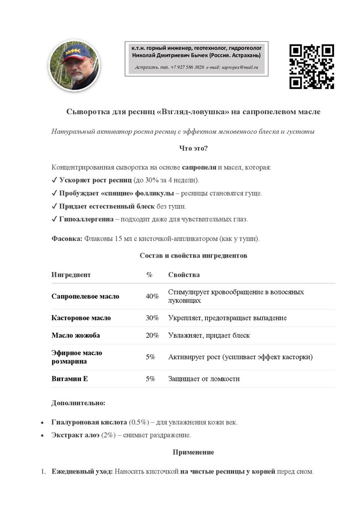Сыворотка для ресниц «Взгляд-ловушка» на сапропелевом масле