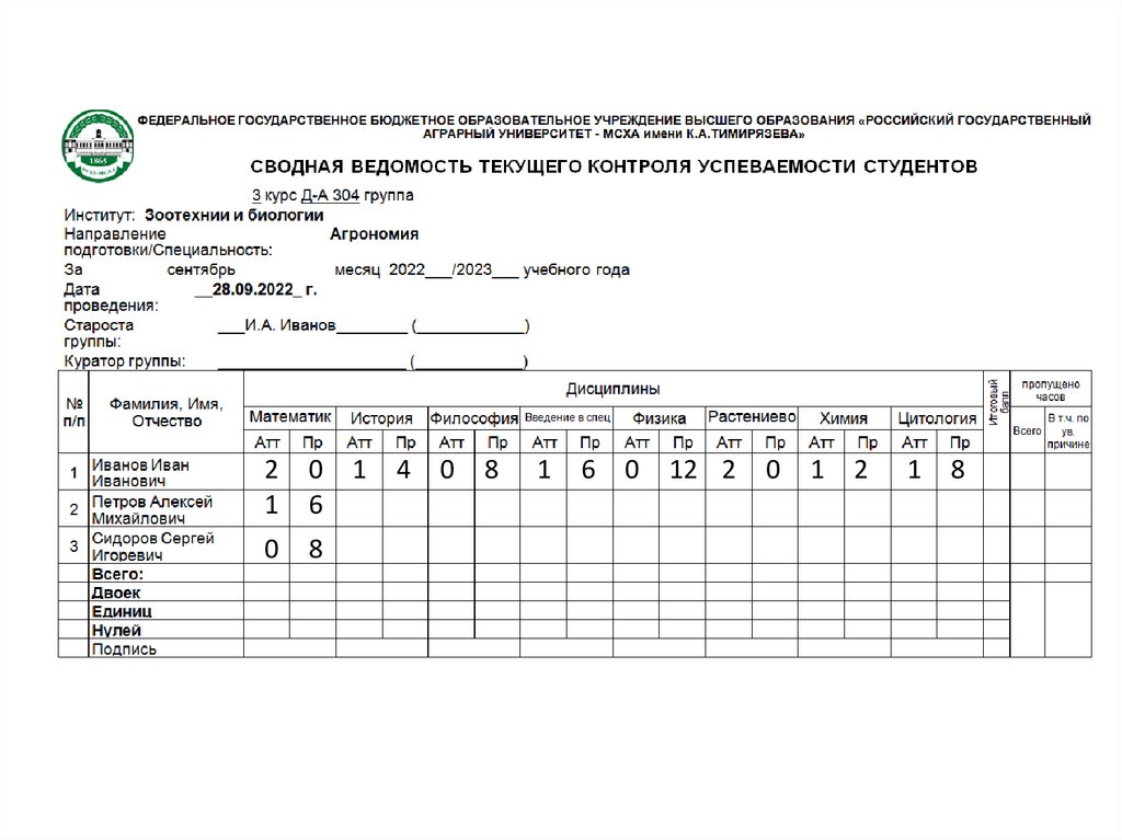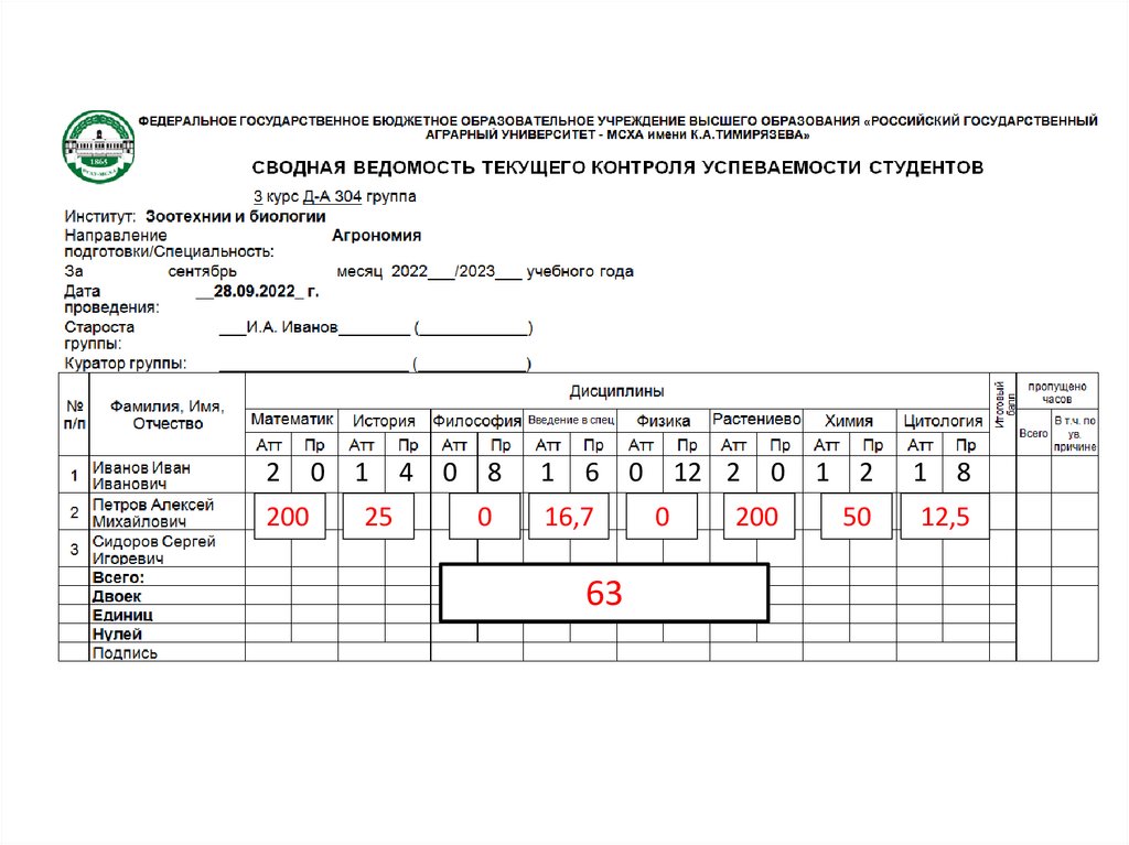 • 2 – студент посещал все занятия (нет пропусков)• 1 – студент посещал занятия, но есть пропуски