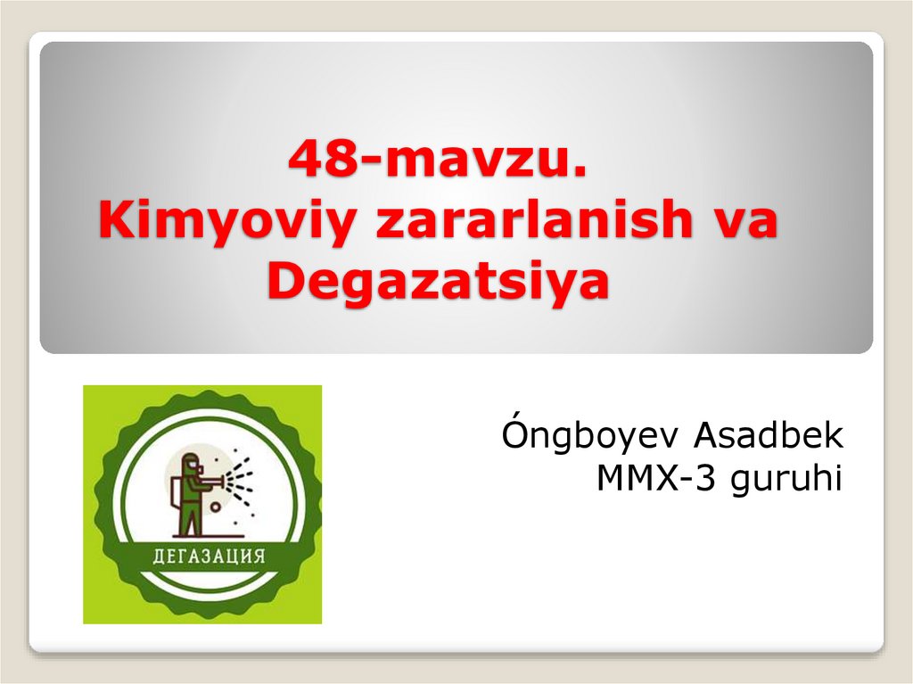 1. 48-mavzu. Kimyoviy zararlanish va Degazatsiya