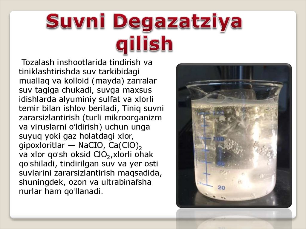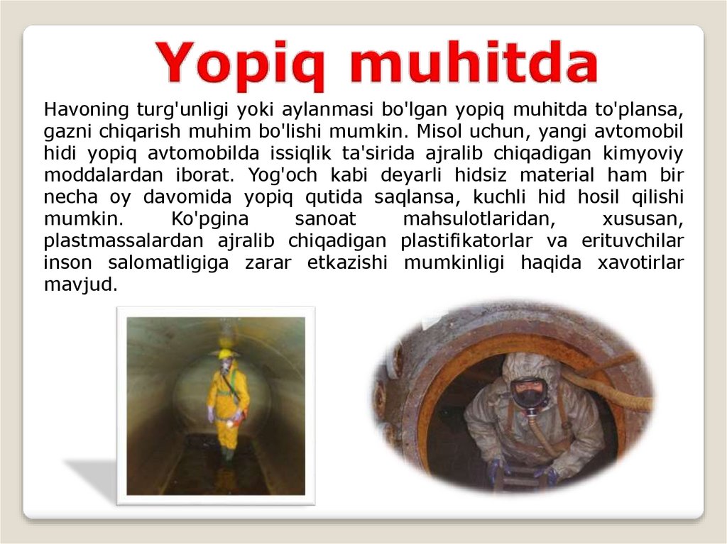 20. 4-o’quv savoli Yopiq muhitda degazatsaiya