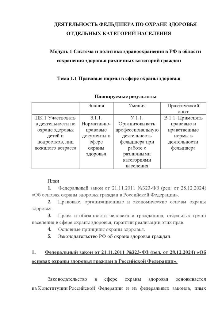 Тема 1.1 Правовые нормы в сфере охраны здоровья