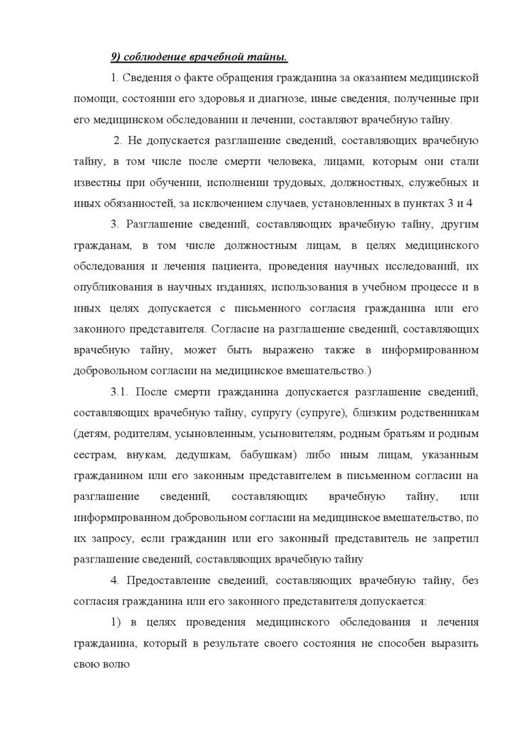 9) соблюдение врачебной тайны.1. Сведения о факте обращения гражданина за оказанием медицинской