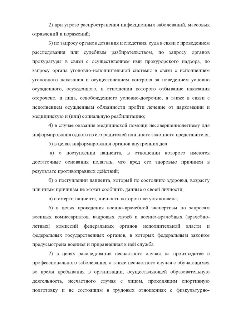 4. Предоставление сведений, составляющих врачебную тайну, без