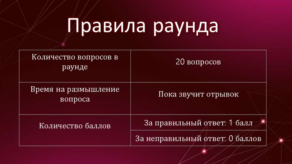 Правила раундаКоличество вопросов в