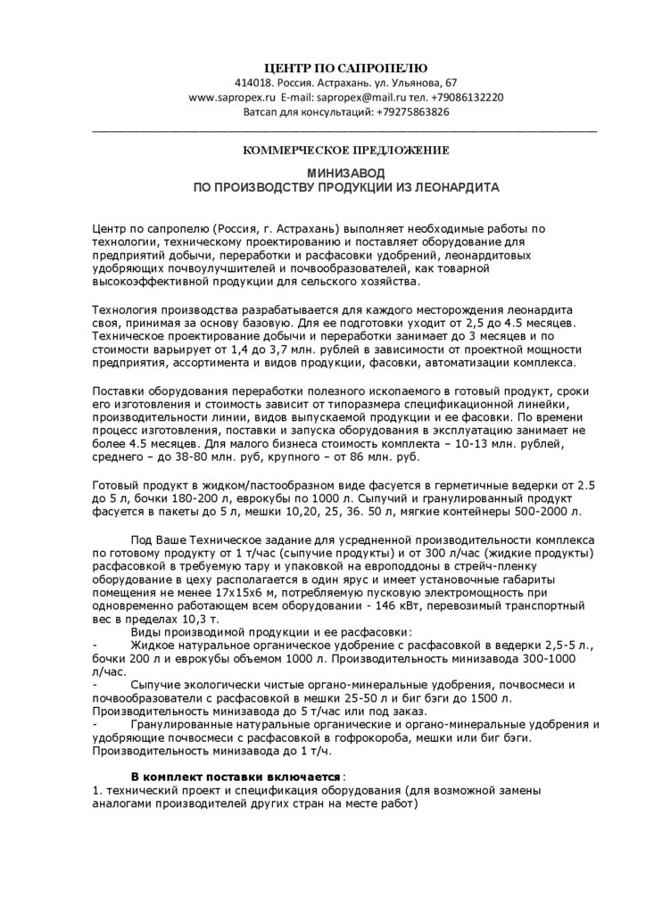 Стоимость минизавода определяется Техническим заданием. В вышеуказанной