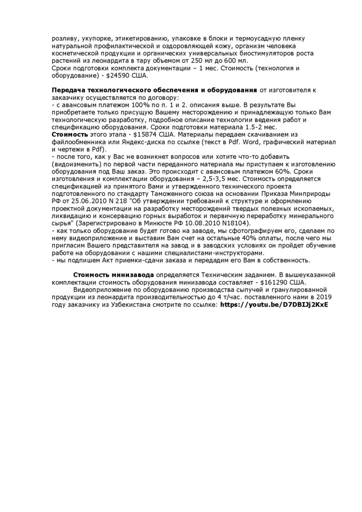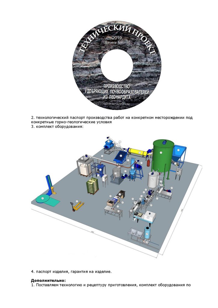 продукции из леонардита производительностью до 4 т/час. поставленного нами в 2019