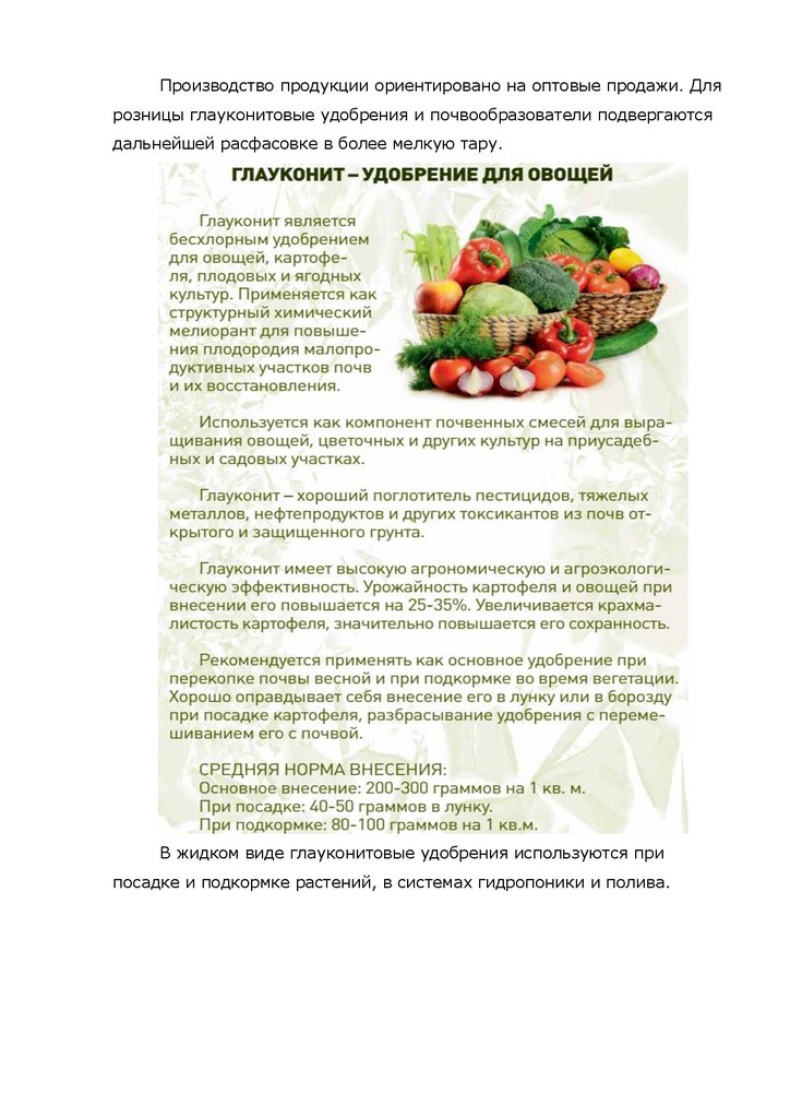 рода удобрений и почвообразователей из глауконита. На коммерческой
