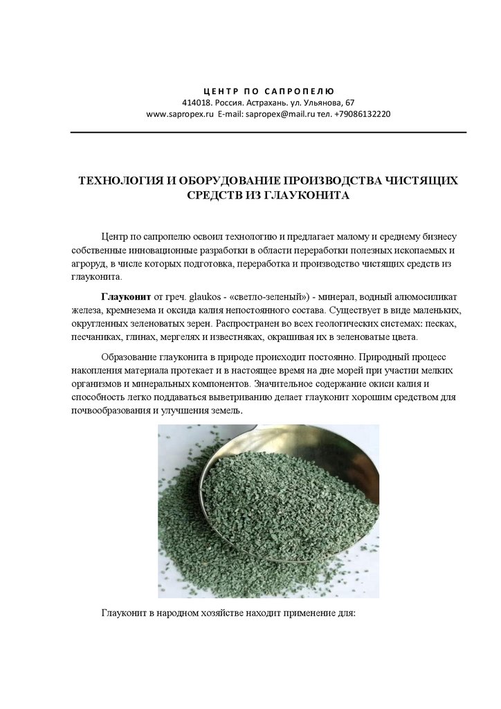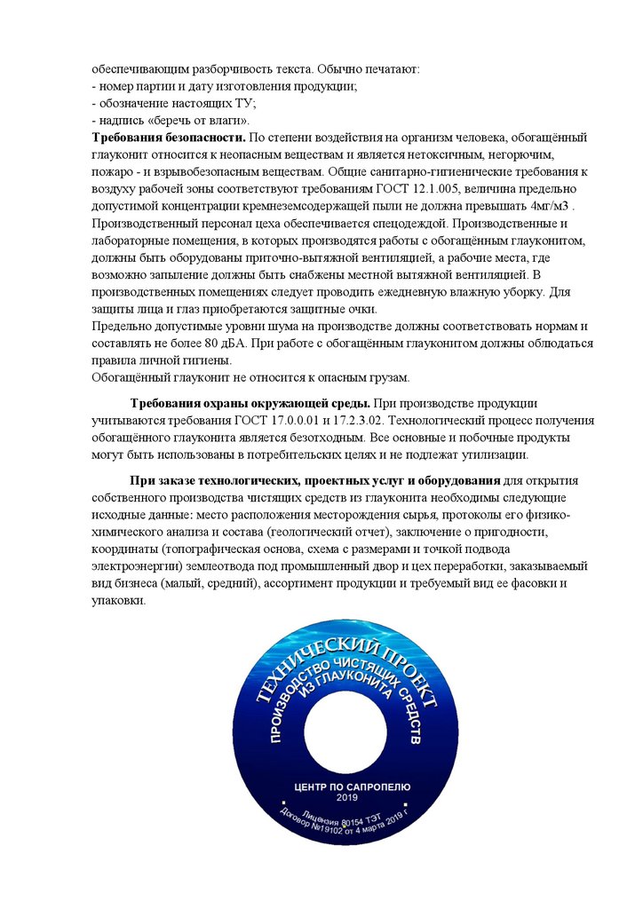 Чистящая продукция из глауконита на рынке страны и за ее пределами наиболее