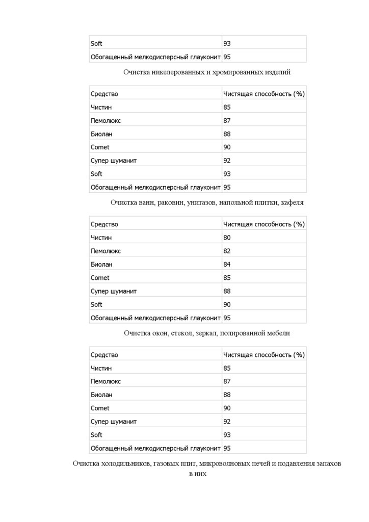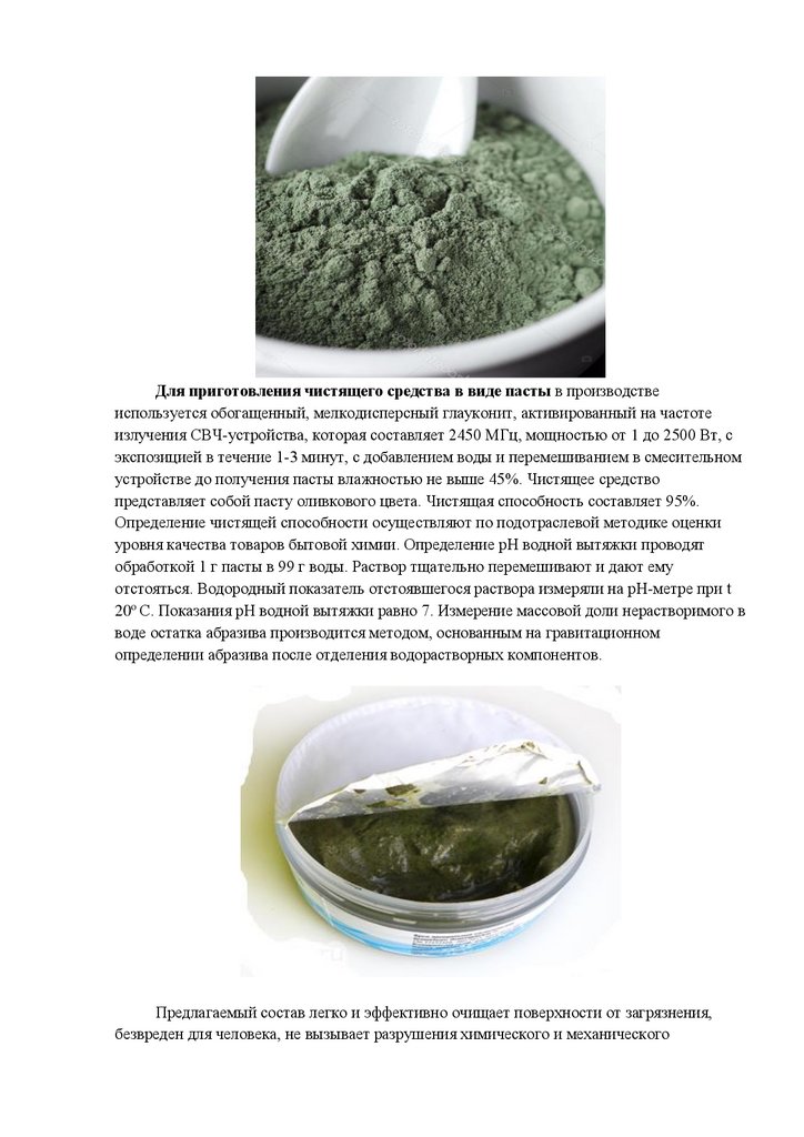 Для приготовления чистящего средства в виде пасты в производствеиспользуется обогащенный, мелкодисперсный глауконит, активированный на частоте