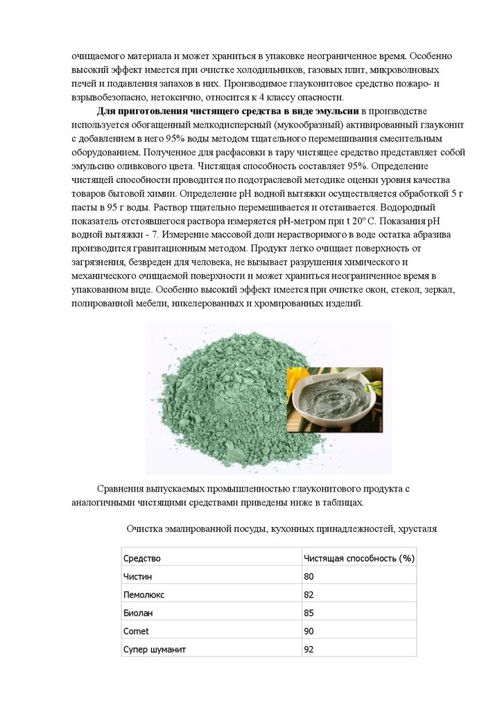 фракций от 0,01 до 100 мкм. Глауконитовое чистящее средство производится на