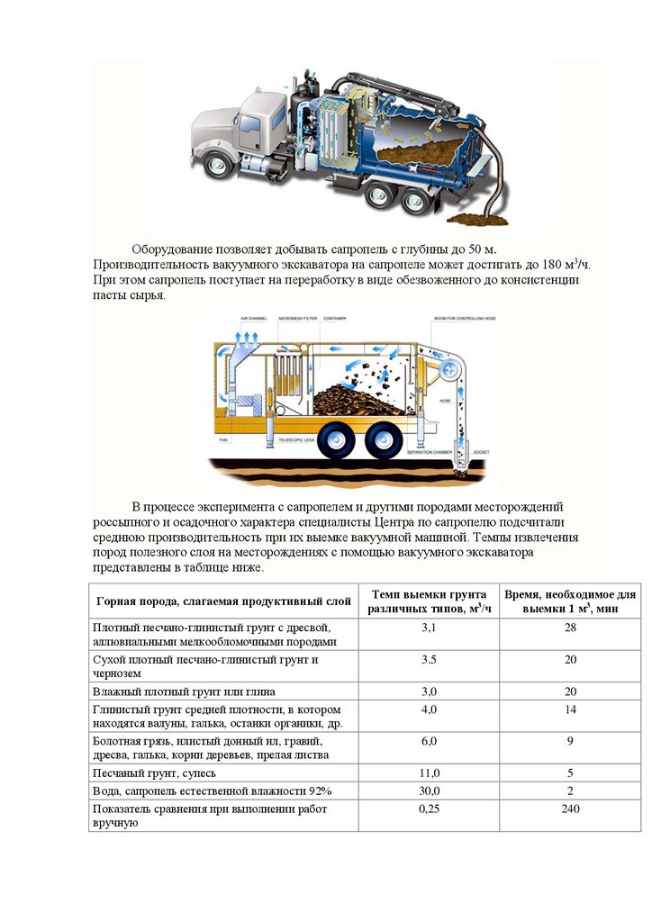 среднюю производительность при их выемке вакуумной машиной. Темпы извлечения