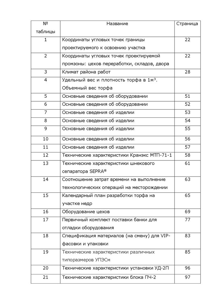 Пример содержания Технического проекта добычи и переработки торфа в товарный продукт