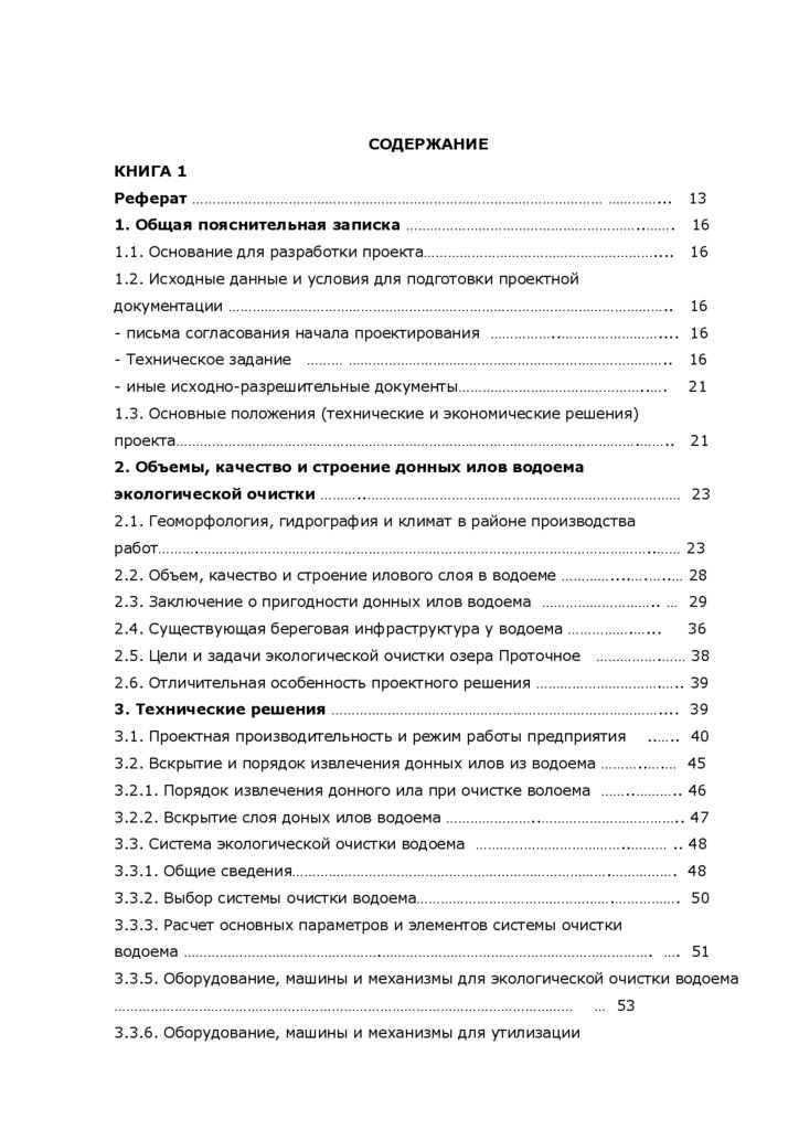 ОБРАЗЕЦ Содержание - Технический проект экологической очистки водоема