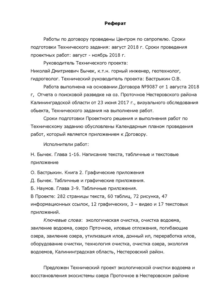 РефератРаботы по договору проведены Центром по сапропелю. Сроки