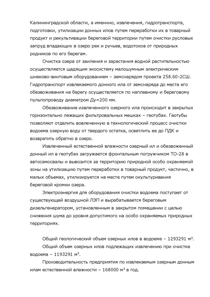 Калининградской области, а именнно, извлечения, гидротранспорта,подготовки, утилизации донных илов путем переработки их в товарный