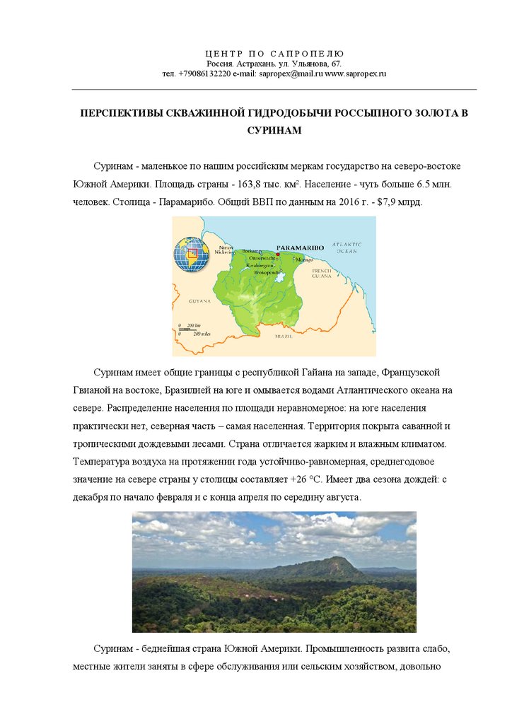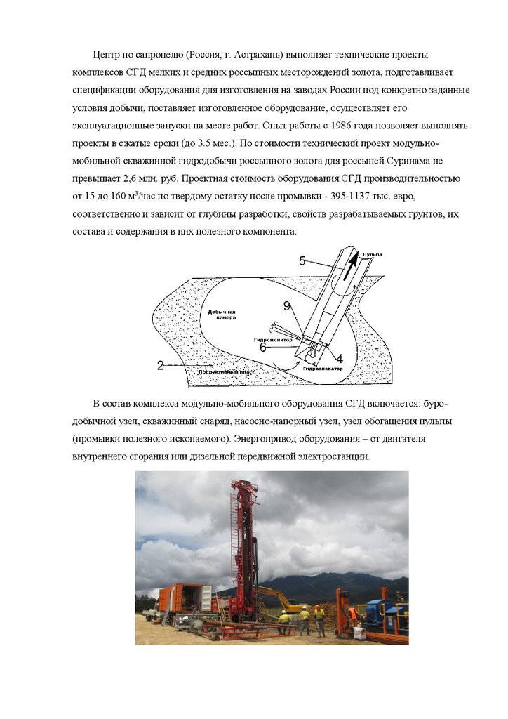 проекты в сжатые сроки (до 3.5 мес.). По стоимости технический проект модульномобильной скважинной гидродобычи россыпного золота для россыпей Суринама не