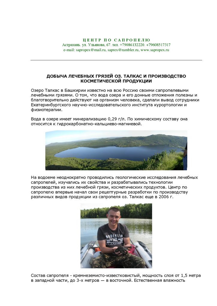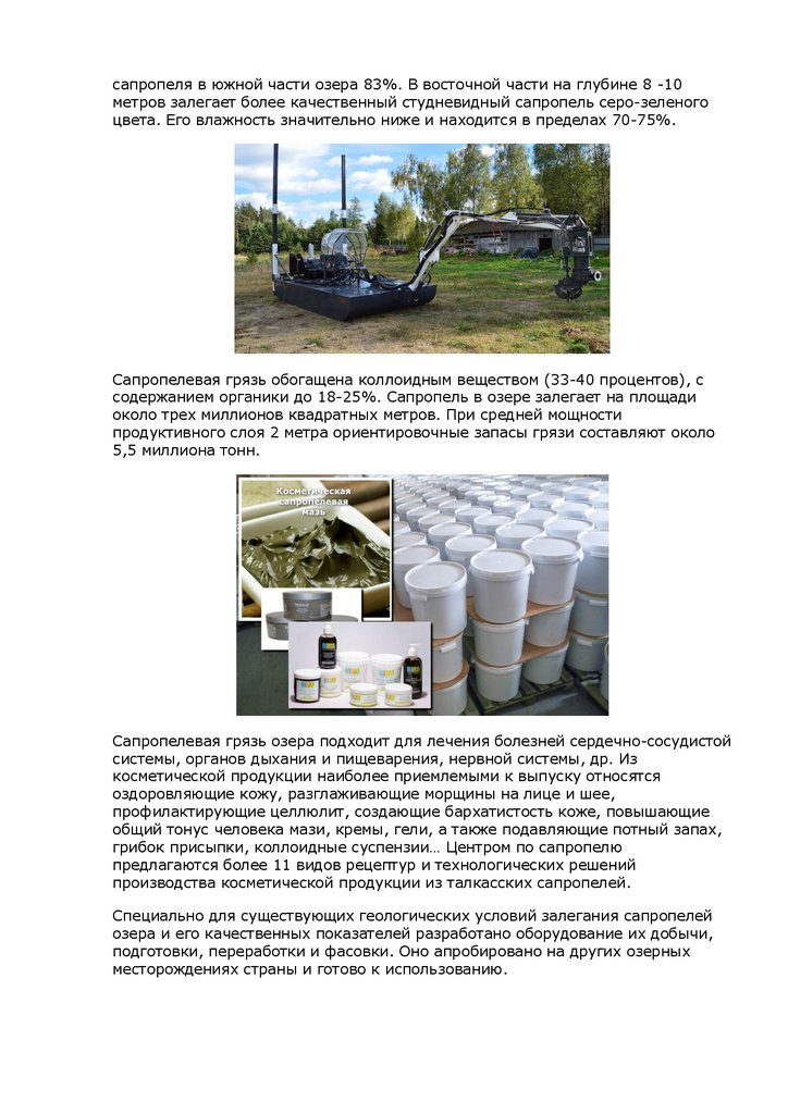 различных видов продукции из сапропеля оз. Талкас еще в 2006 г.