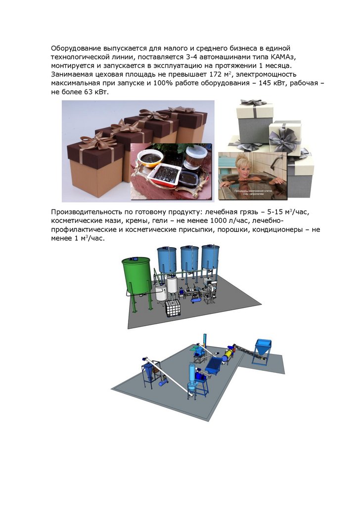 Производительность по готовому продукту: лечебная грязь – 5-15 м3/час,