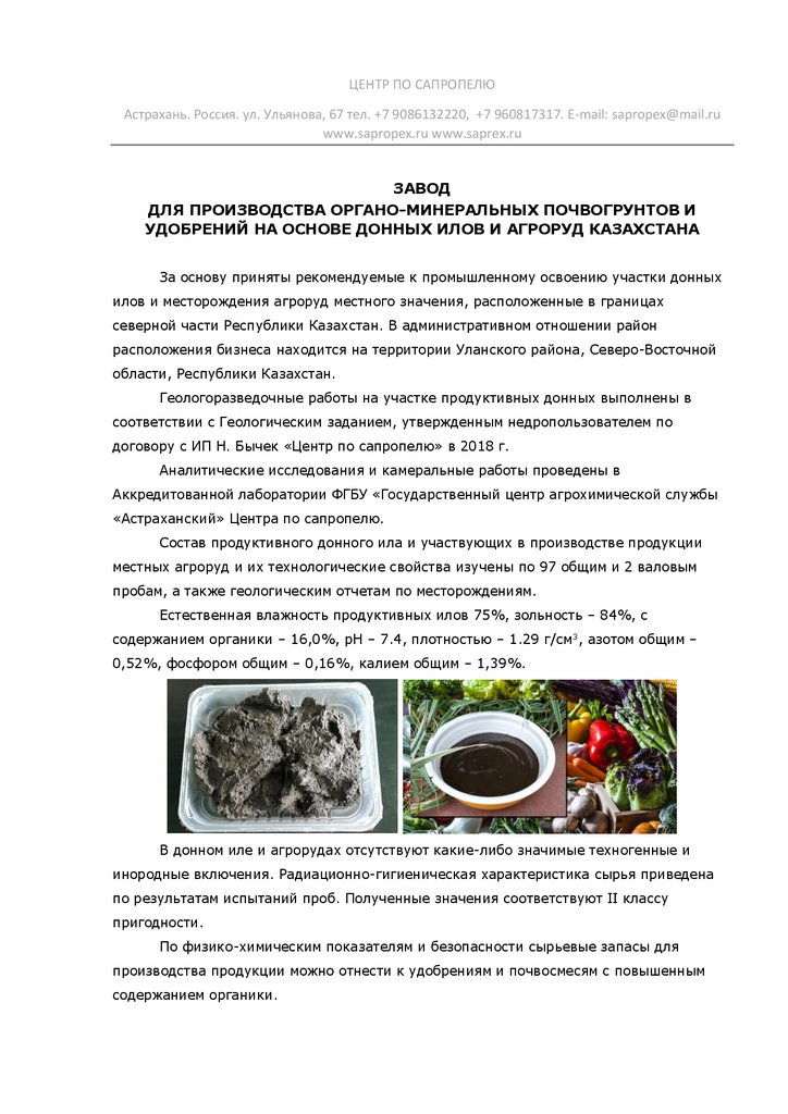 Открытие бизнеса производства удобрений и почвосмесей из донного ила и агроруд Казахстана