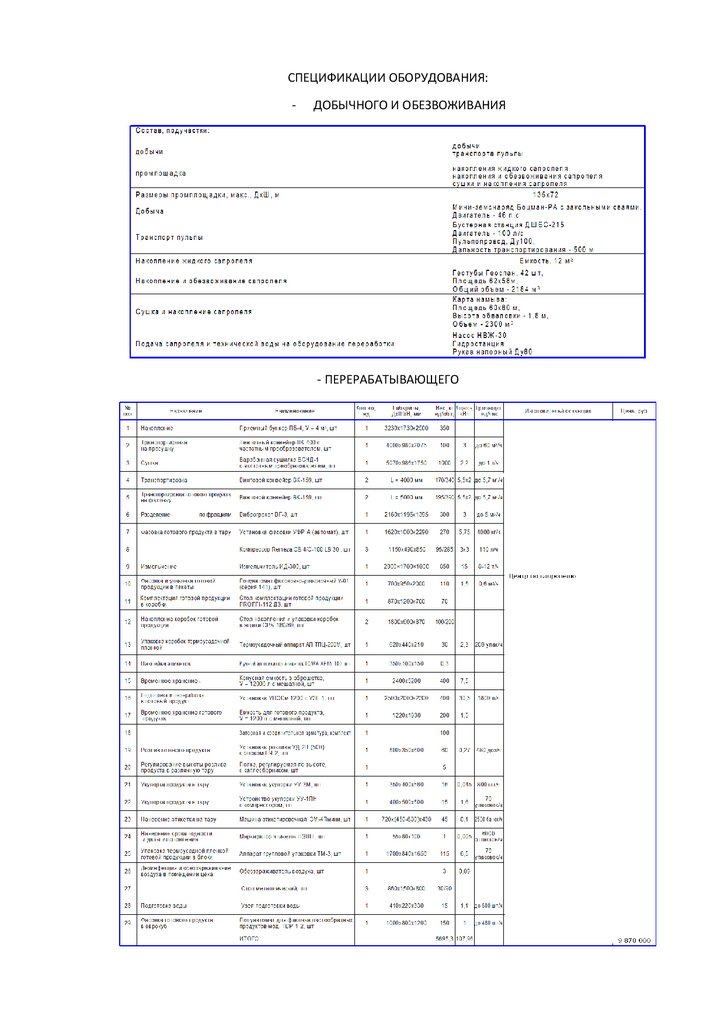 стоимость оборудования (добыча и переработка) определяется Техническим проектом.