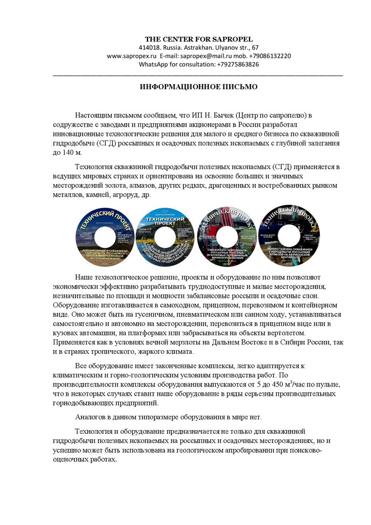 Настоящим письмом сообщаем, что ИП Н. Бычек (Центр по сапропелю) в