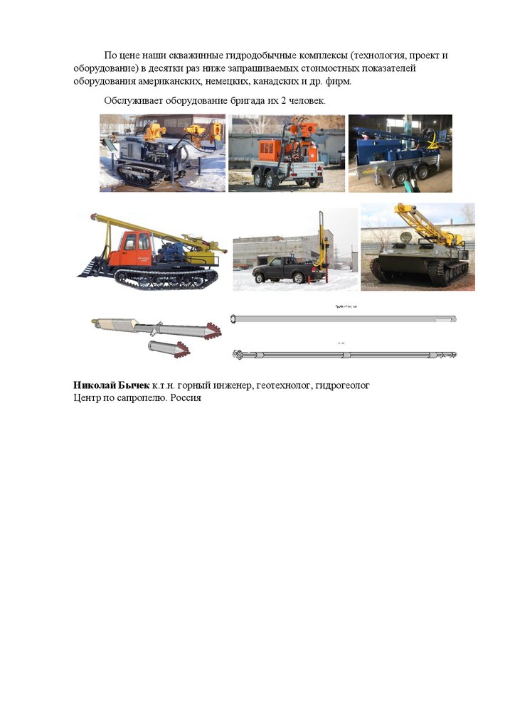 По цене наши скважинные гидродобычные комплексы (технология, проект иоборудование) в десятки раз ниже запрашиваемых стоимостных показателей