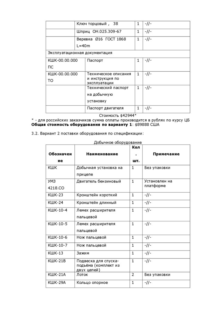 3.2. Вариант 2 поставки оборудования по спецификации: