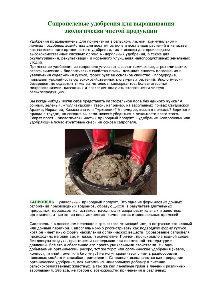 удобрений из сапропеля для выращивания и подкормки различных сельхозкультур. Это
