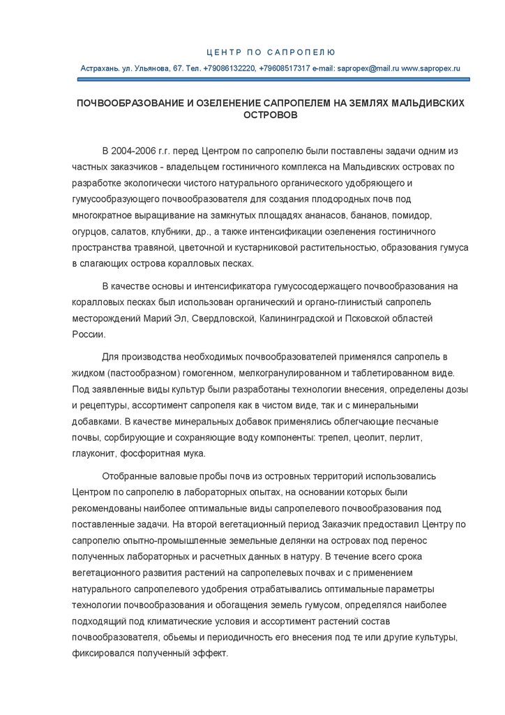 ПОЧВООБРАЗОВАНИЕ И ОЗЕЛЕНЕНИЕ САПРОПЕЛЕМ НА ЗЕМЛЯХ МАЛЬДИВСКИХ