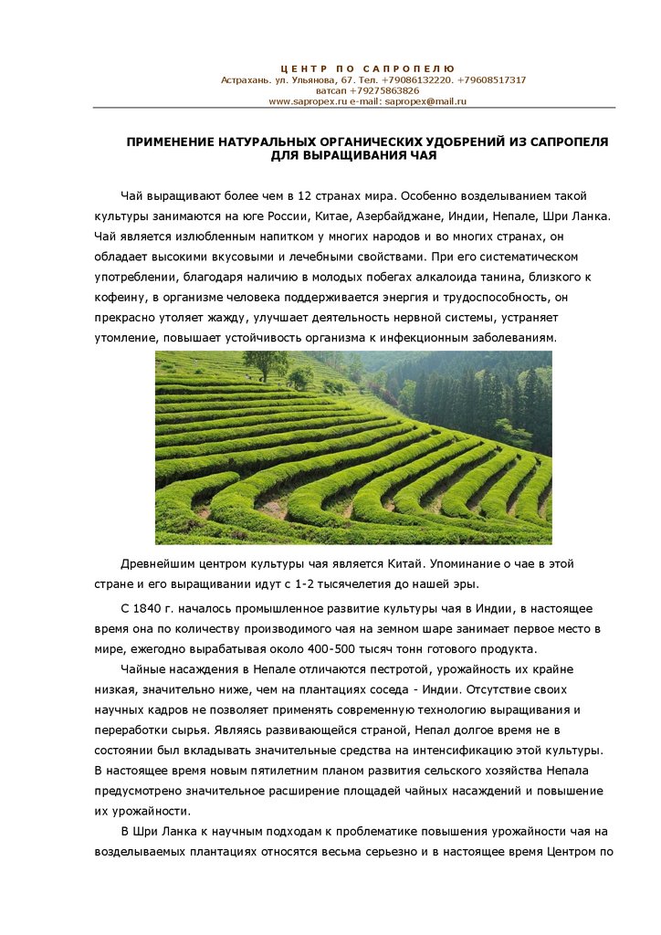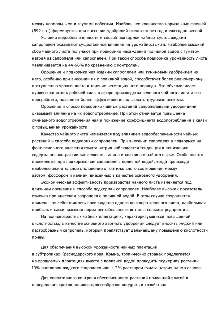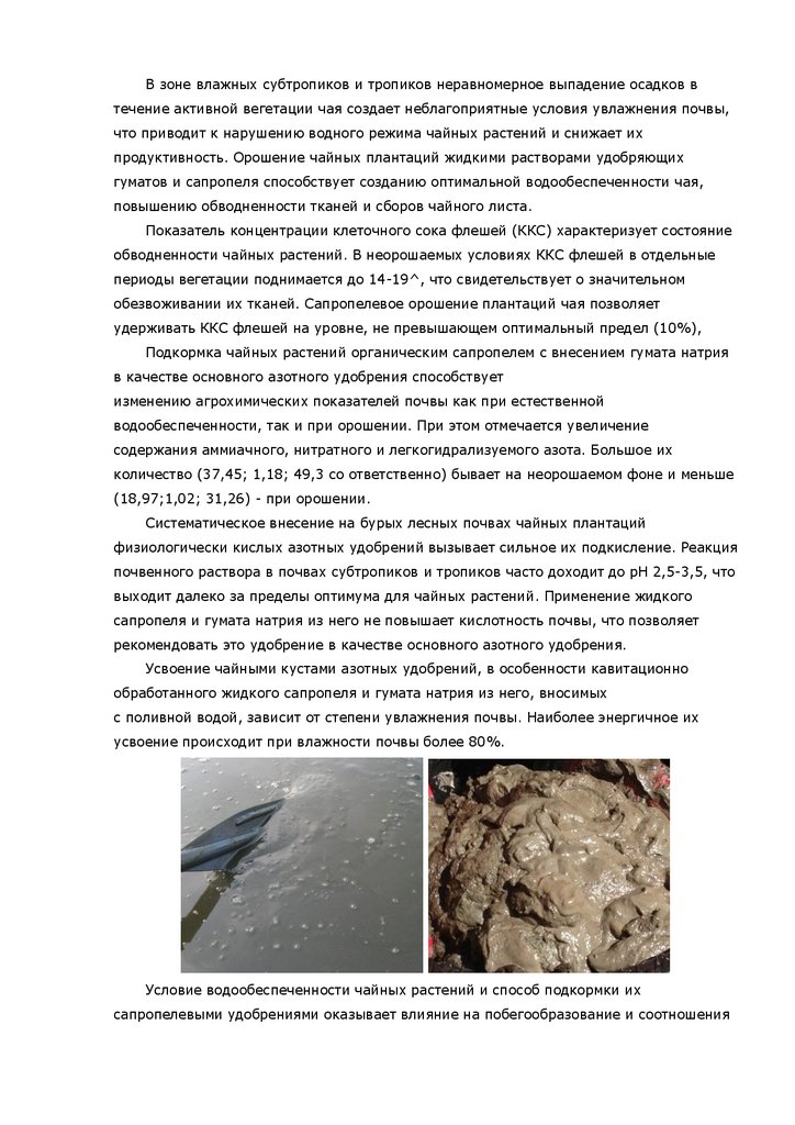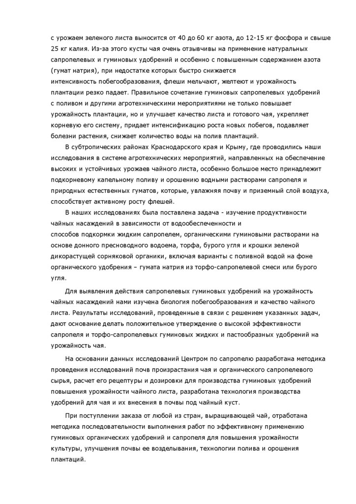 чайных плантаций, орошения, а также применения удобрений, в т.ч. и сапропелевых.