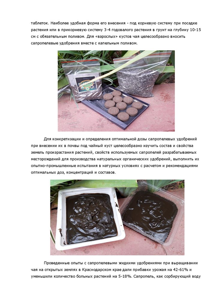 месторождений сапропеля в России, технологии их внесения под чайный куст. Данный